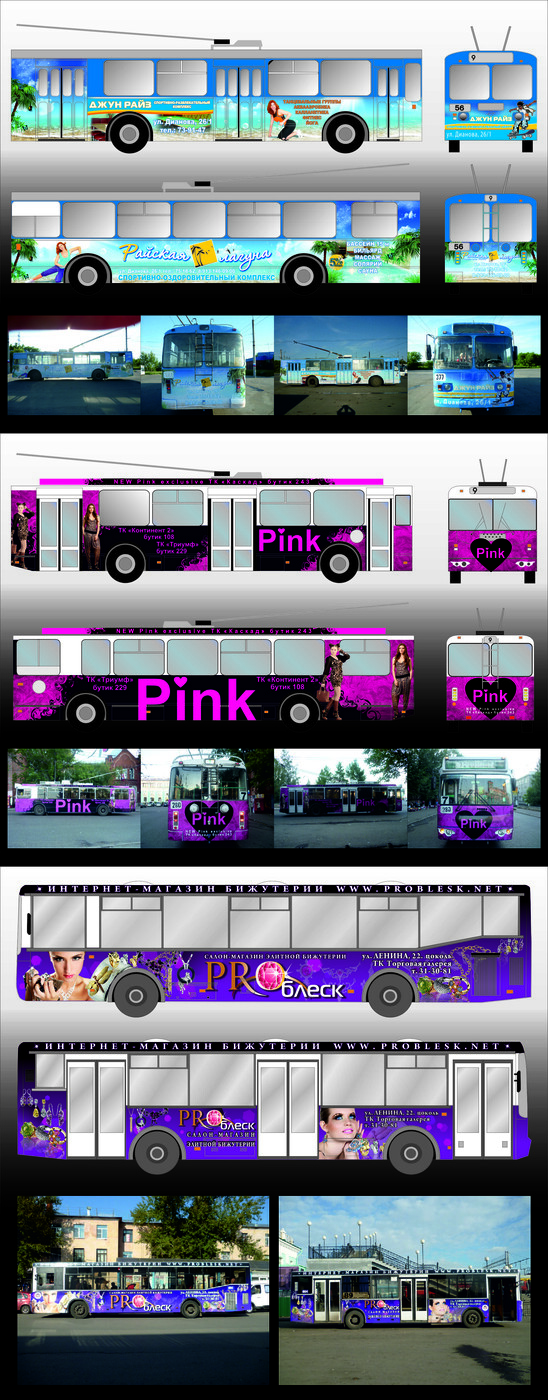 - Изготовление дизайна на транспорт-(автобусы, троллейбусы, трамваи) корпоративные заказы, подготовка к печати на плёнке, баннере. Резка на плоттере.
