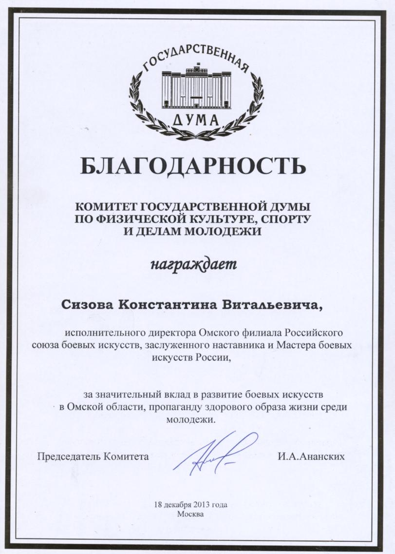 Достижение: на базе неиспользованных муниципальных и иных государственных помещений, силами организации, создан спортивный Центр "Нокаут" и сеть клубов кикбоксинга, состоящая из 7 залов. Проведено -два Кубка России, 10 Всероссийских турниров, около 40 региональных турниров, 5 Фестивалей.Награжден Благодарственным письмом Федерации кикбоксинга России