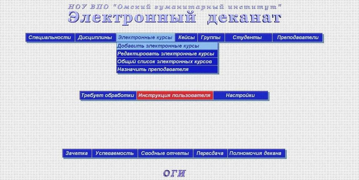 3) Разработка Системы ?Электронный деканат? для Дистанционного обучения "Омской Гуманитарной Академии» автоматизирующего деятельность деканатов ВУЗА.